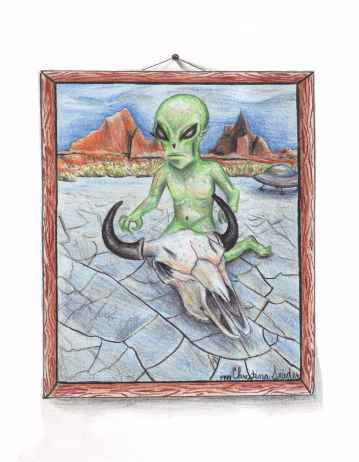 This picture was my fun, inventive way of depicting my idea of extra-terrestrial life. Done in colored pencil.