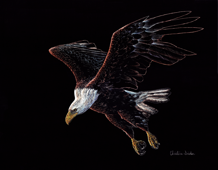 This is an Eagle that I specifically did for a benefit (Pairing the Best for Treasure Chest) in 5/13. Done on scratch board, colored in with Gouache.