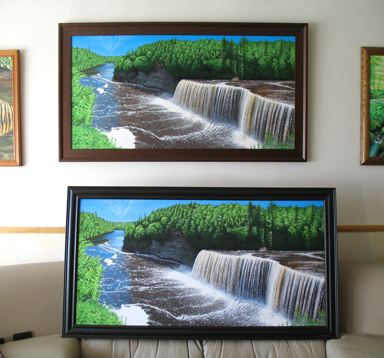 A Giclee (pronounced zee-klay) is a print of a painting that is expertly printed on canvas or water color paper. A Giclee can be purchased for just a fraction of the price that an original painting would cost. The print, if printed on canvas is professionally clear coated not only for longevity but also for quality. The Giclee printer uses 100% cotton canvas and paper, pigmented inks and superior coating for a finished print that looks almost like the original painting itself (see below). A Giclee print if printed on canvas can be stretched and framed just like an original painting. Giclee prints can also be printed at actual size or smaller than the original if one has limited wall space. Whether it be canvas or water color paper, the finished product is a beautiful picture to hang on your wall. Contact me now to order your Giclee print!
