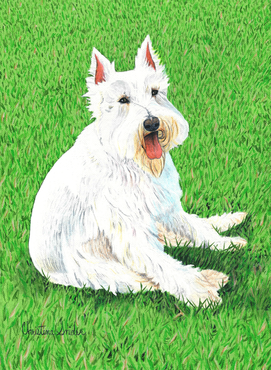 Portrait of my own beloved dog, Snoopy. This little guy sits with a slouch because of arthritis. I love that little guy! Acrylic painting on canvas board. Completed 5/12/16. Size 9" x 12".