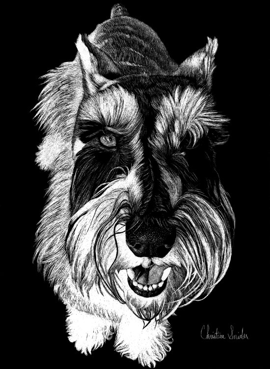Portrait of my own beloved dog, Turbo. He passed away in February, 2015. Done on scratch board with exacto knife. Completed 3/2015. Size 8 1/2" x 11"