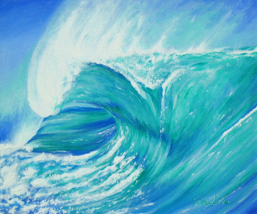 This is a painting that I did while I was in college. My love for water inspired me to paint this using bright shades of aqua, greens and blues. Size is 16" x 20". Medium is acrylic paint. (Giclee not available.)