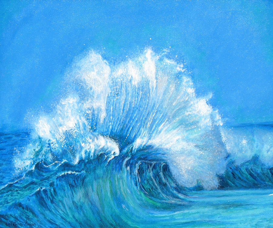 This is another water painting that I did a couple of years ago (2009) to test my skills after being on a hiatus from painting for a while. Since there was nothing to sketch out, all I had to do was paint a water form with highlights and shadows. A good way to ease back into painting again. Size is 12" x 16". Done in acrylic. (Giclee not available.)