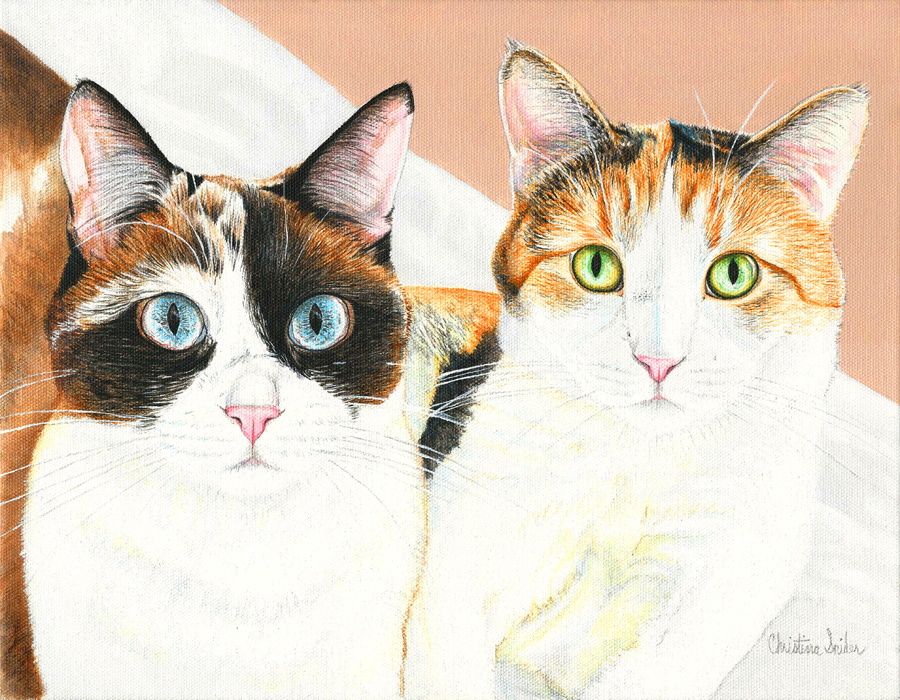 Painting of my clients' two cats named Zoey and Shay. Painted on canvas in Acrylic paint. Size 11" x 14", Completed 02/2017.